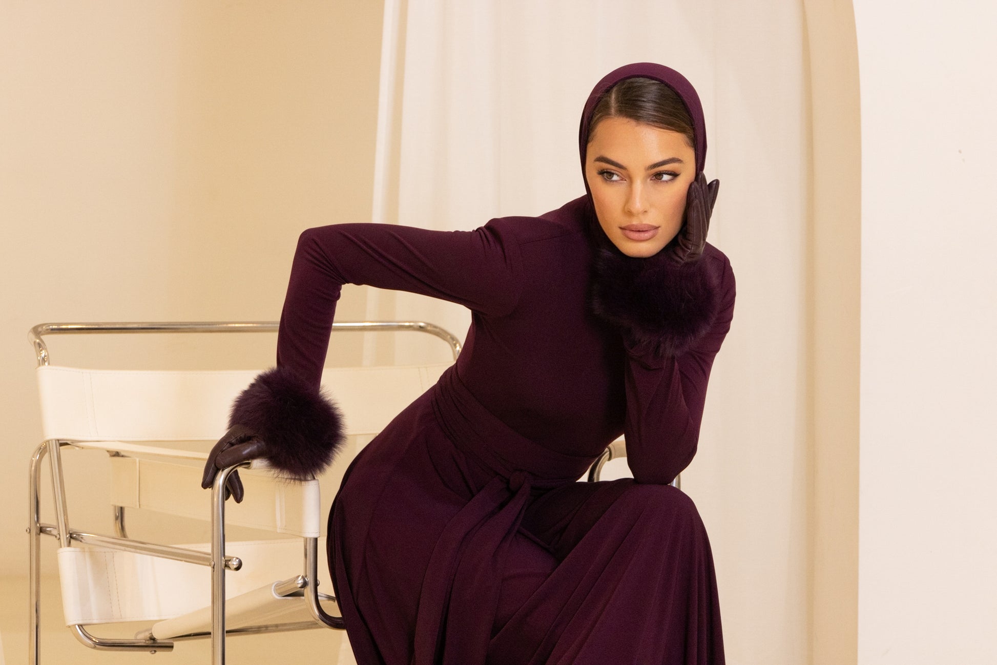 Elevate your modest event wardrobe with our stunning Bloom Maxi Dress. This rich, deep plum floor-length gown combines timeless sophistication with modern comfort, perfect for making a statement at any occasion.